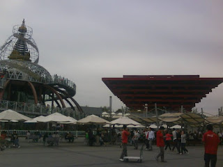 my colleague who went there 1 week before, and another colleague who've been there 1 month before me; told me that the weather there was damn hot & dried. so, there's no need to bring along my sweater. Unfortunately, there was HEAVY rain from the day we arrived at the airport till the day we leaved Shanghai. Grrrrrr ku sangkakan panas hingga ke ptg, rupa nya ujan di tgh hari. thanks to Double A for the useful umbrella
