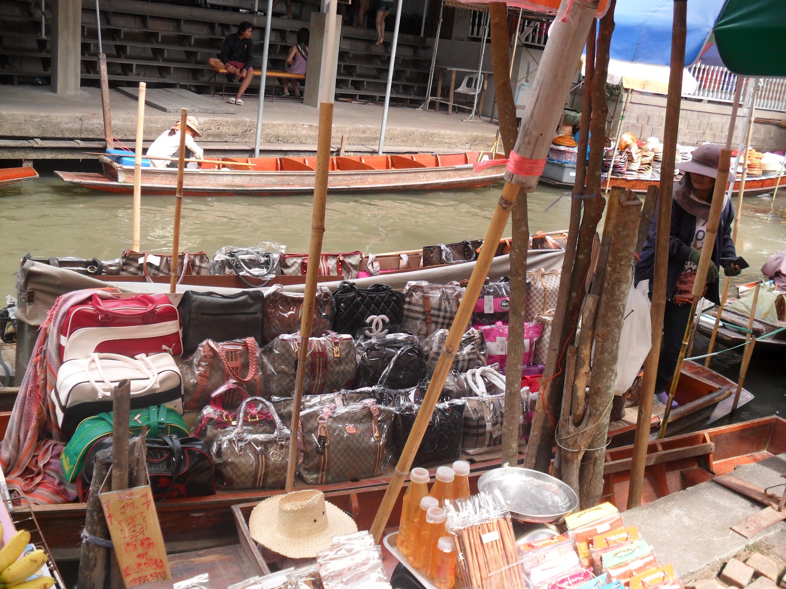 Damnoen Saduak, Ratchaburi. only 1 hour journey by bus where you wont get boring cause i'm sure you may enjoy watching the 'massive' jammed of the other lane. back to the market story, just imagine that the local folks selling their stuff on the 'sampan'. all kind of fruits, 'kuih', souvenirs, and the most surprising item is : Gucci Handbags! only the-very-sporting aunties can do that. errr i think it's better for me to let photos explain more bout this market.